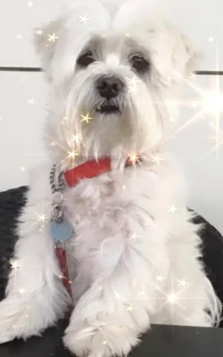 Nu is alles anders. Intussen krijg ik hypo-allergene brokken en dagelijks Vetalin probiotica. Nu ben ik een blije en vrolijke hond en ik maak drollen om een strik om te doen!!